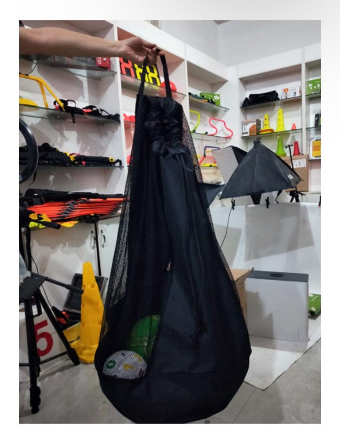 巾着タイプでボールの出し入れが簡単。大容量で、約15‐25個のボールが入れられます。外出や習い事にぴったり。