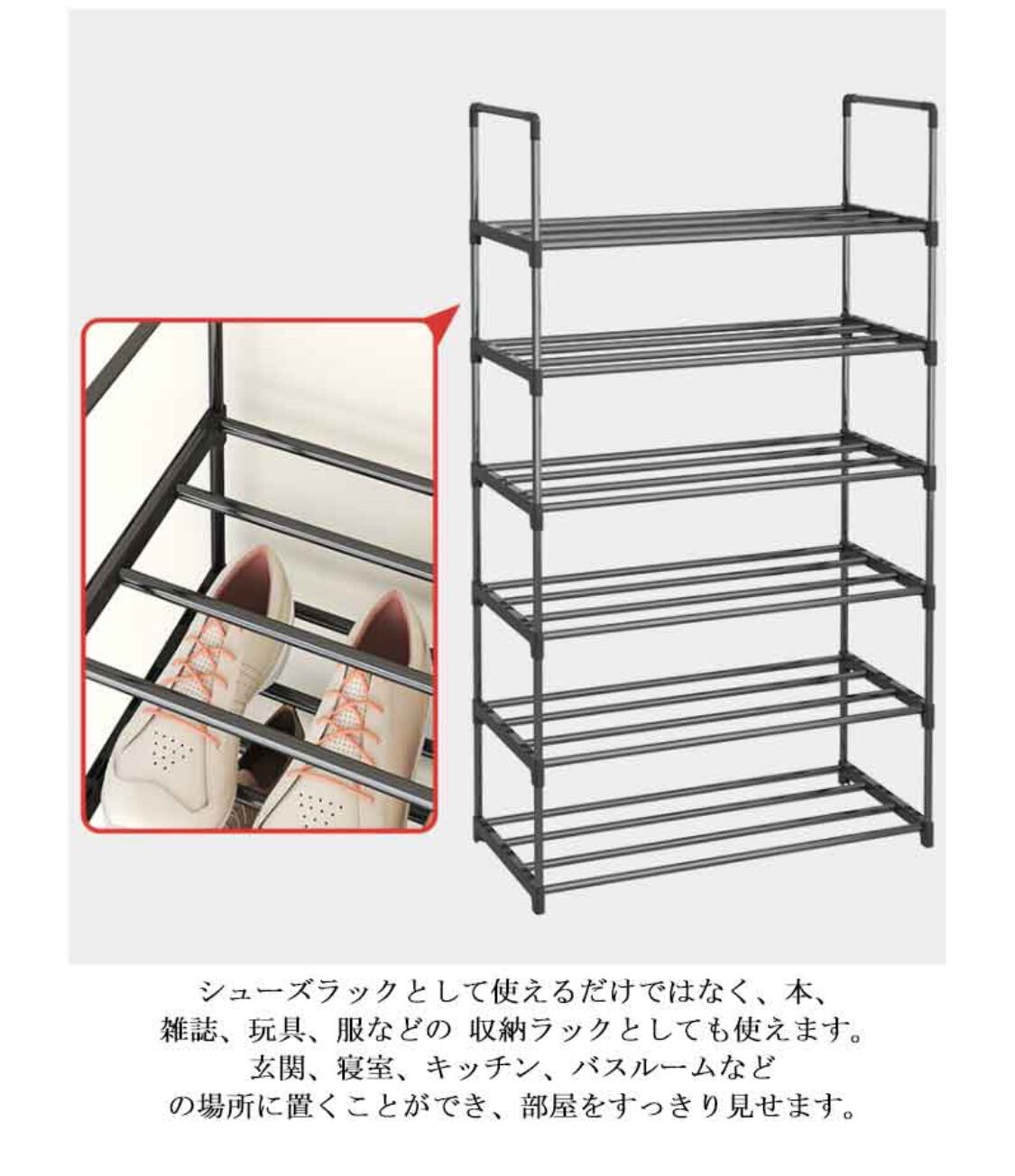可動棚で棚の間の間隔を広げることが可能であり、ロングブーツもレインブーツも、背の高い靴でも収納することが出来ます。シューズラックとして使えるだけではなく、本、雑誌、玩具、服などの 収納ラックとしても使えます。