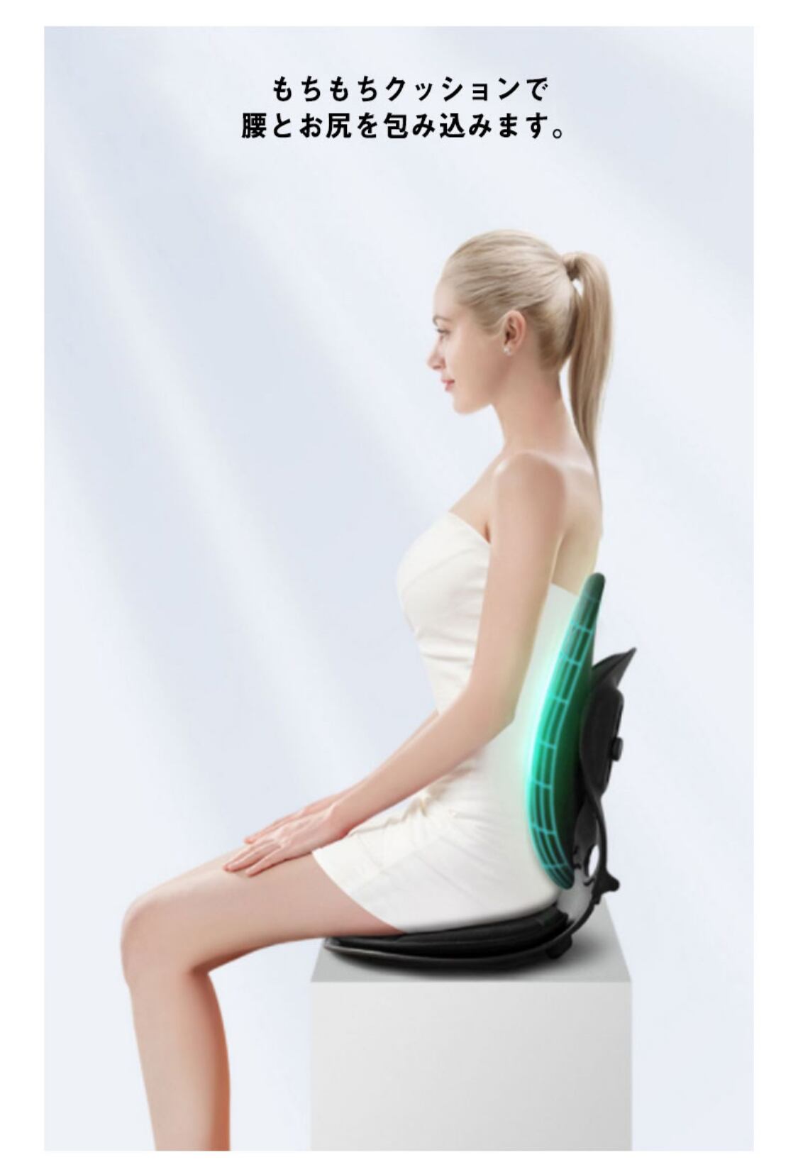 猫背から背筋がまっすぐに!腰をほどよく支えてくれるので理想の背筋をサポート!もちもちクッションで腰とお尻を包み込みます。