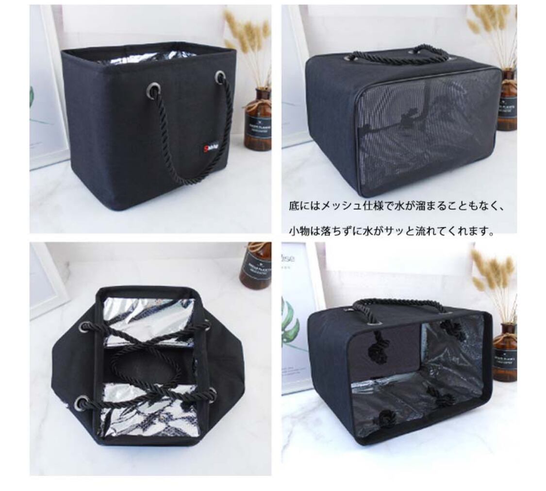 ジムや温泉・海・プールに必要な洗面用具を、まとめて持ち運ぶのに便利なアイテム。底にはメッシュ仕様で水が溜まることもなく、小物は落ちずに水がサッと流れてくれます。