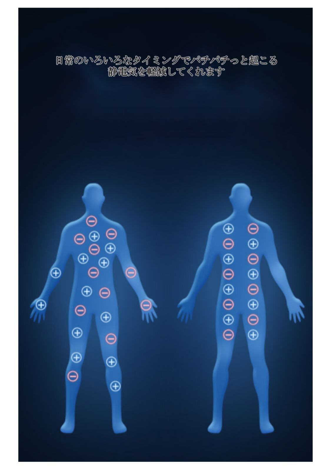身体に溜まった静電気を空気中にゆるやかに放電する静電気除去ブレスレット。日常のいろいろなタイミングでパチパチっと起こる静電気を軽減してくれます。