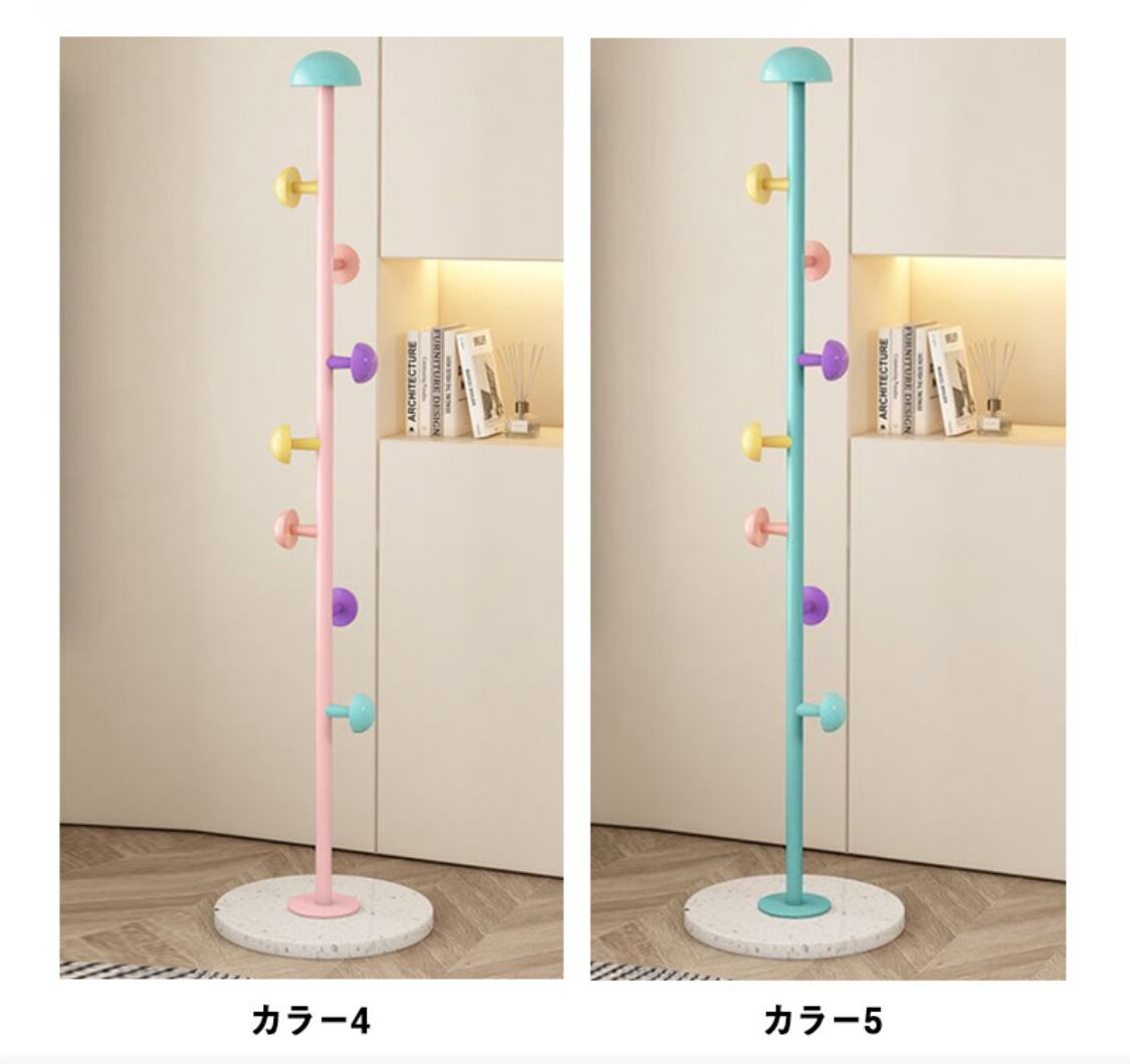 マッシュルームデザインのフックはかわいらしいデザイン。組立て簡単!女性でも手軽に組み立てることができます。生活に不可欠なコートハンガーです。