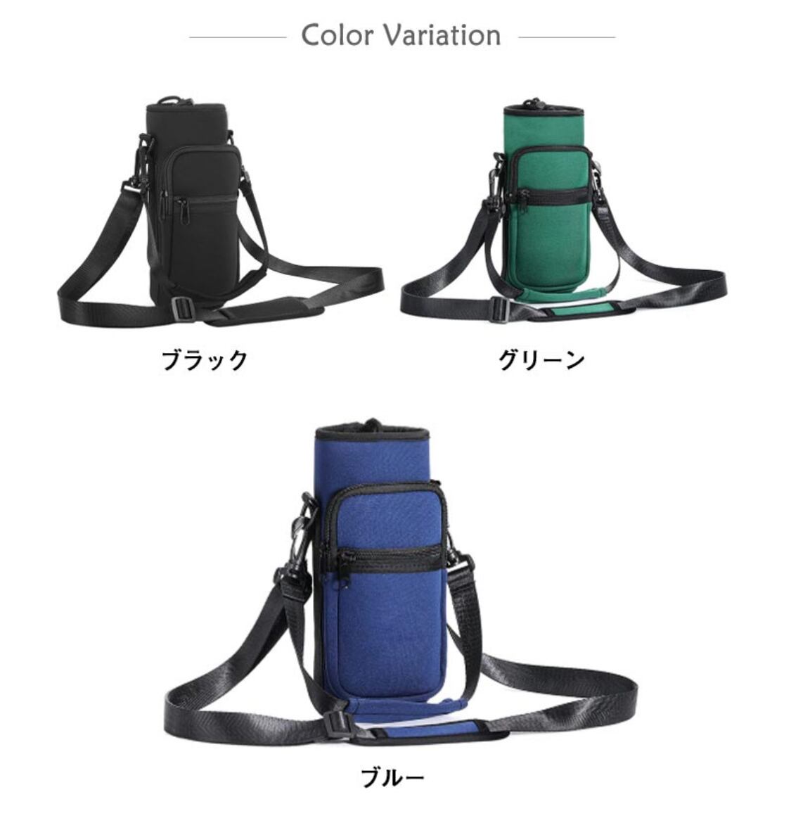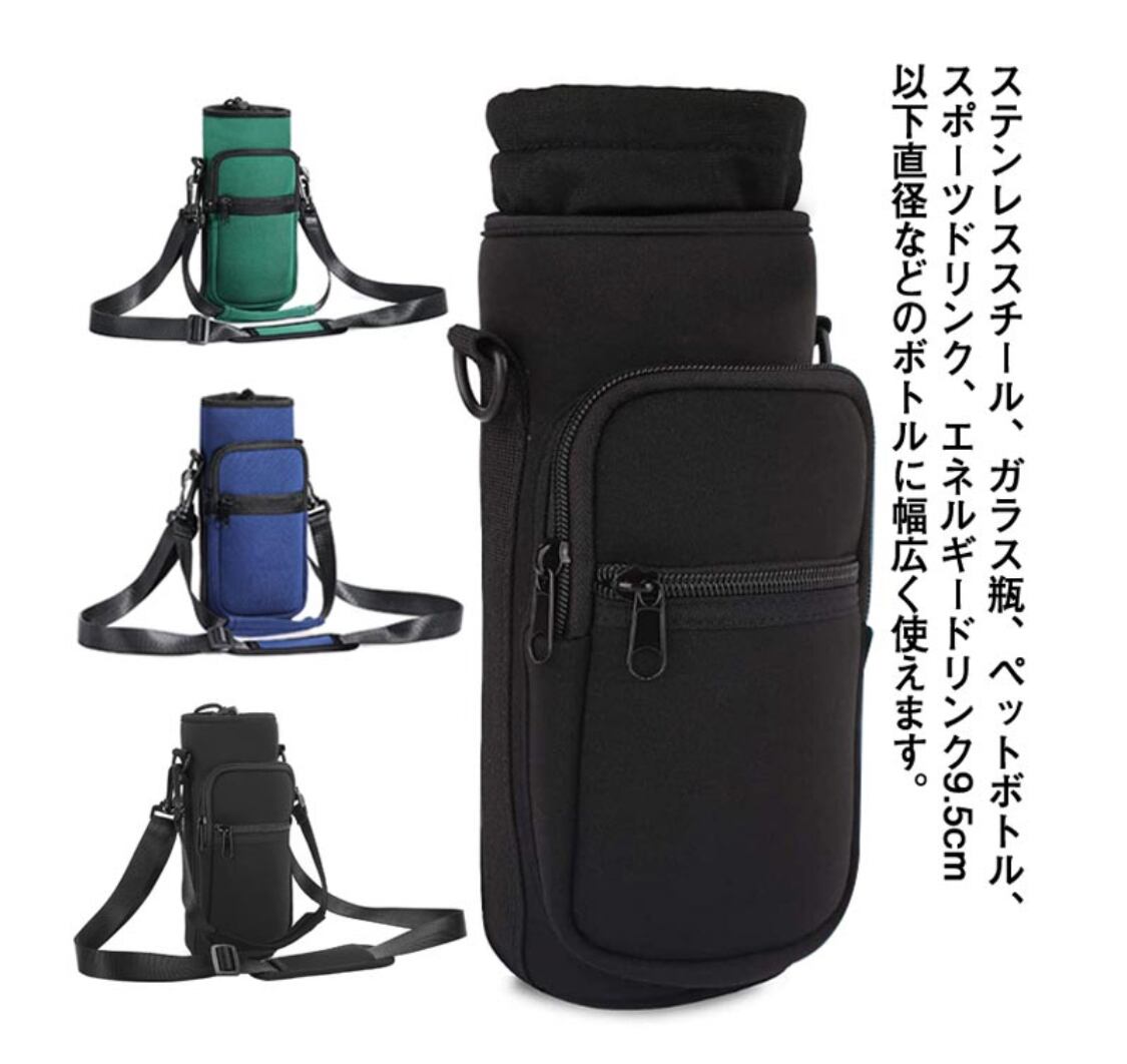 ※直径9.5cmまでの水筒、ペットボトルに対応します。パッケージ:1×水筒カバー、1×ショルダーベルト、1×ハンドストラップ。