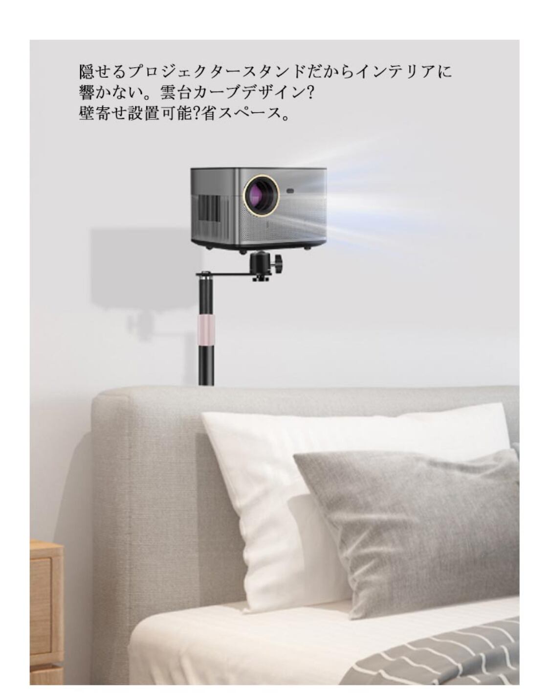 国際標準1/4ネジだから各端末でご使用可能!隠せるプロジェクタースタンドだからインテリアに響かない。雲台カーブデザイン?壁寄せ設置可能?省スペース。