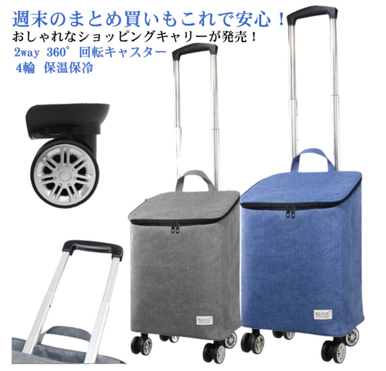 ショッピングカート 4輪 保温保冷 ショッピングキャリー キャスター付き 横押し 2way