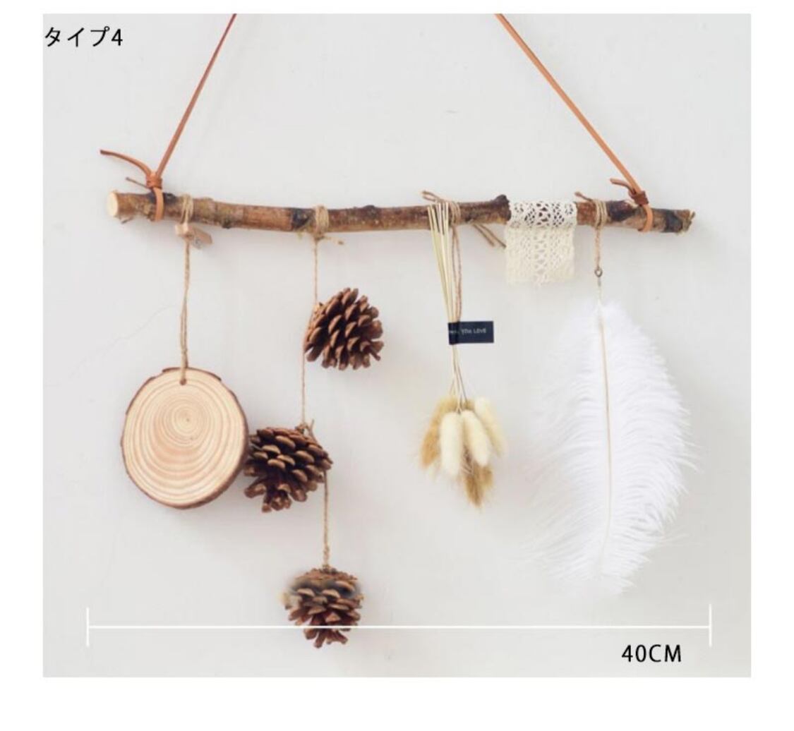 ドライフラワーや木の棒、葉、麻ひもなどナチュラル要素を組み合わせたインテリアです。麻紐が付いているので、そのままスワッグとしても飾ることが出来ます。