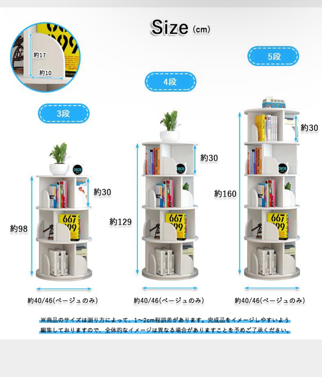 回転式本棚 子供部屋 本収納 コミックラック お洒落ラック 360°回転 オーク ホワイト本棚 サイドテーブル