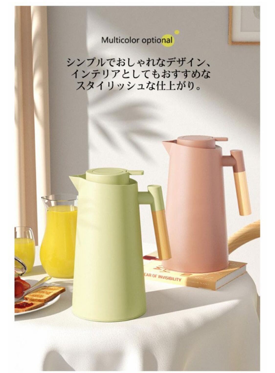 人間工学に基づいたおしゃれなデザインで使いやすいです。お茶、コーヒー、水、ミルク、ジュースなどの保存用の卓上ポットとして大活躍です。