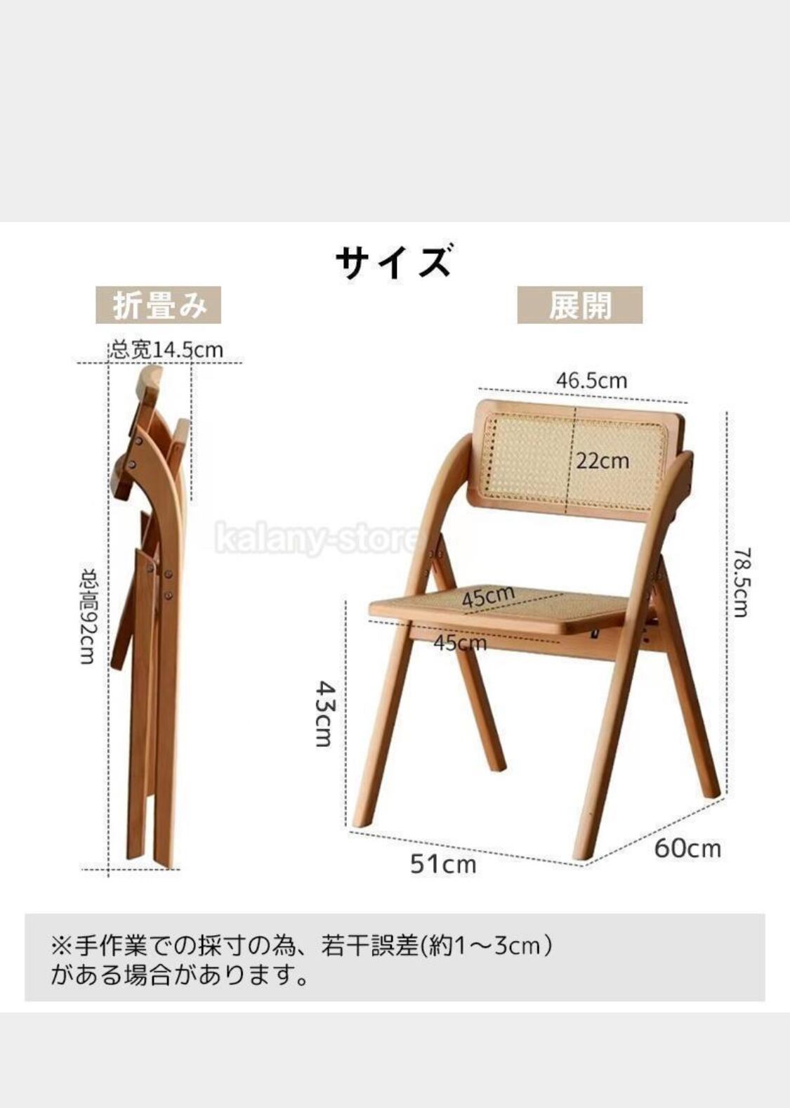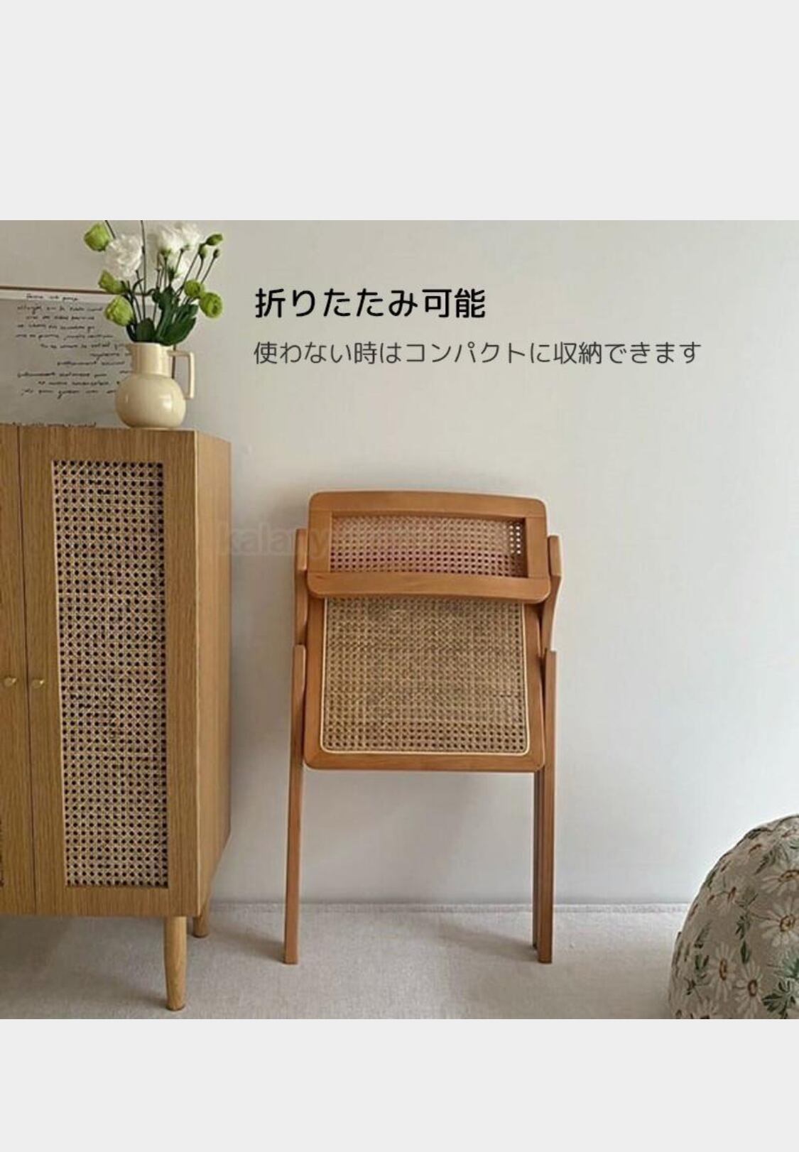 折りたたみ椅子 ラタン家具 職人手作り 籐編み 食卓椅子。北欧のシンプルで洗練されたデザインが特徴。高品質な天然素材を使用し、快適な座り心地を提供します。