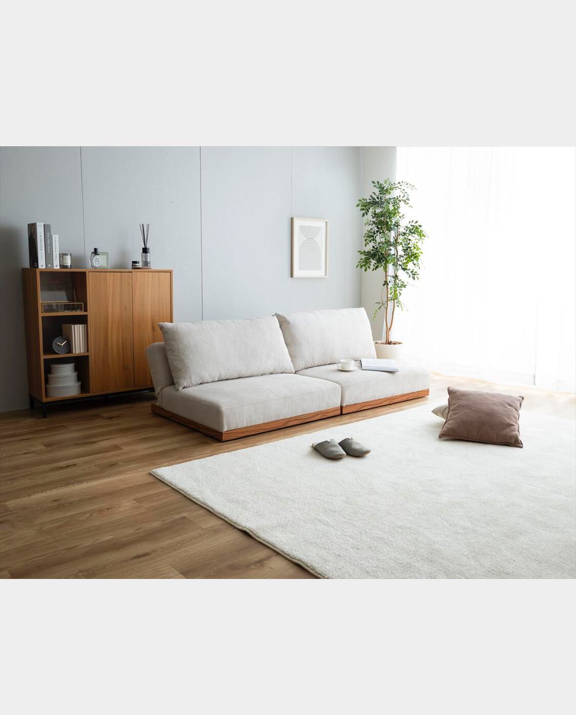 ゆったりとした座面と背もたれ、そして足をのばせるリクライニング機能が付いたこのソファは、快適なくつろぎ空間を演出します。