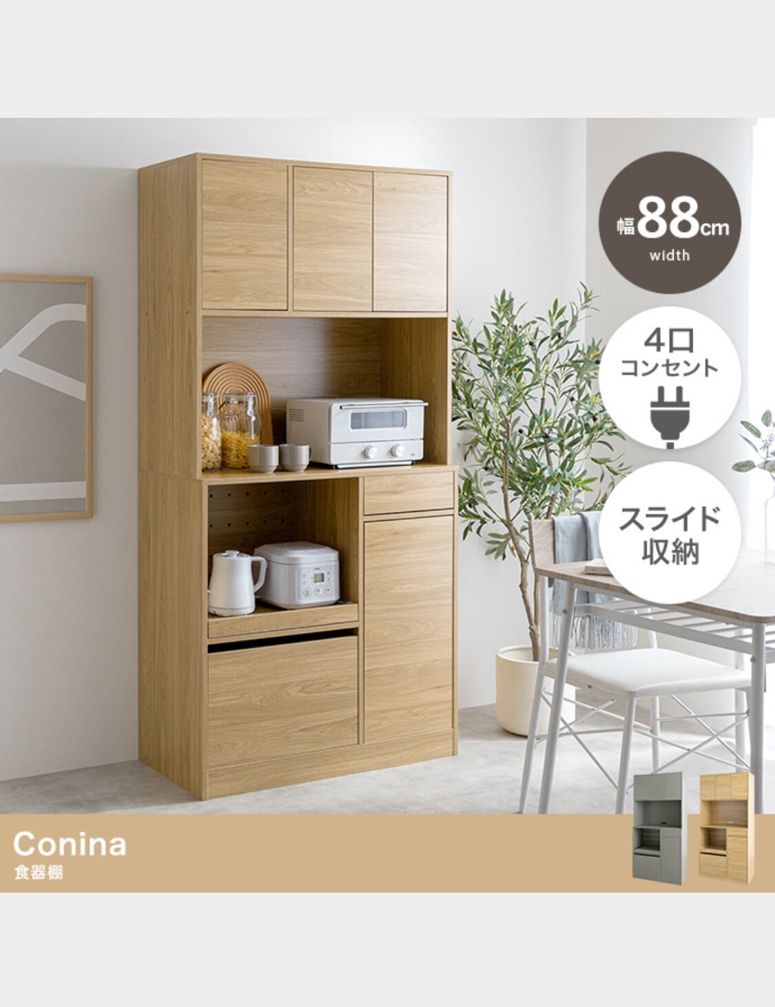 【幅88cm】Conina 食器棚