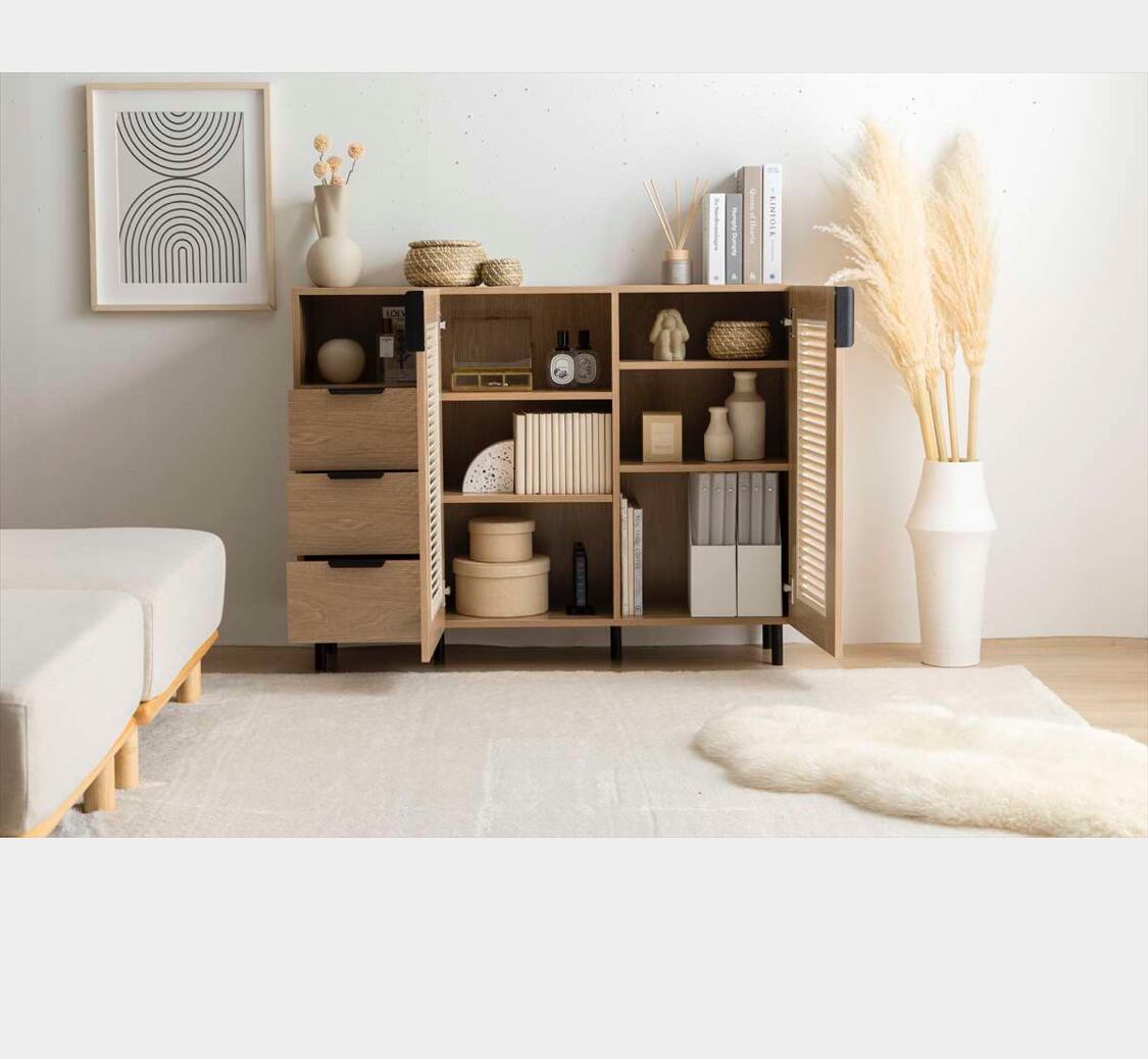 しっかりとした作りで収納力抜群。リビングやダイニング、寝室など様々な場所で活躍します。シンプルなデザインがお部屋をスッキリと演出し、お好みのインテリアに合わせやすいのも魅力です。