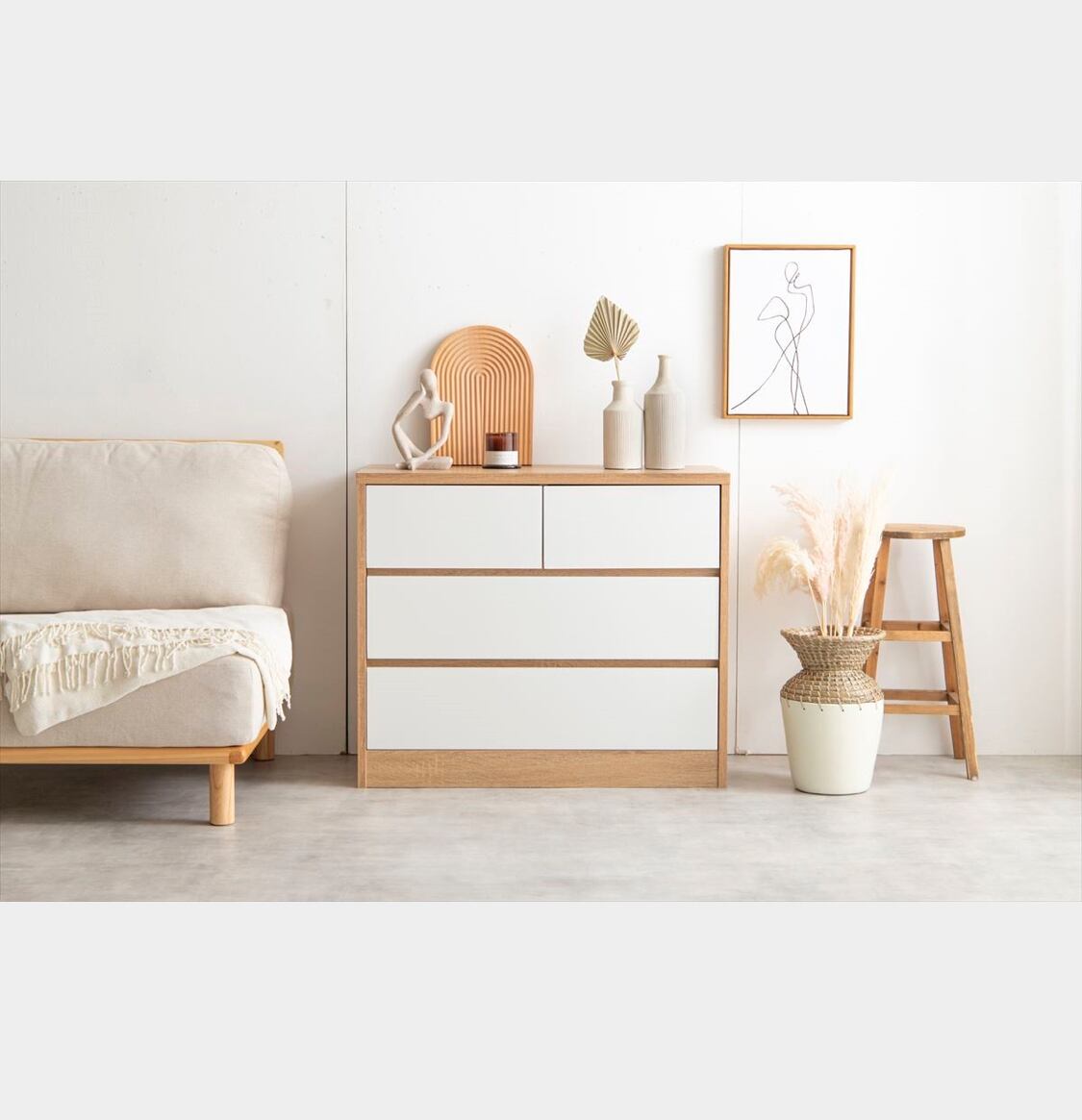 シンプルでモダンな北欧風デザインのLinoaチェストは、幅80cmとコンパクトなサイズながらも収納力たっぷり。
