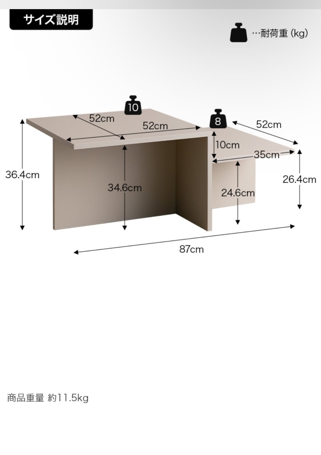 幅87cm×奥行52cm×高さ36.4~26.4cm