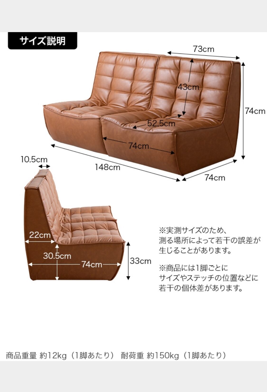 幅148cm(74cm+74cm)×奥行74cm×高さ74cm(座面高 約33cm)