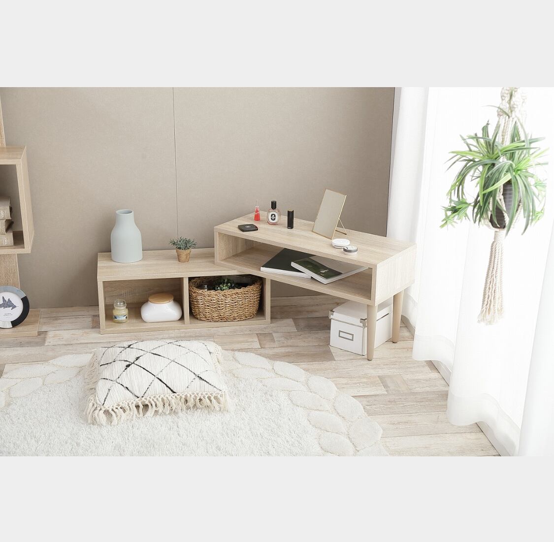 テレビのサイズに合わせて自在に調節可能な伸縮機能が付いており、使い勝手も抜群です。 これまでのインテリアと一線を画す存在感。