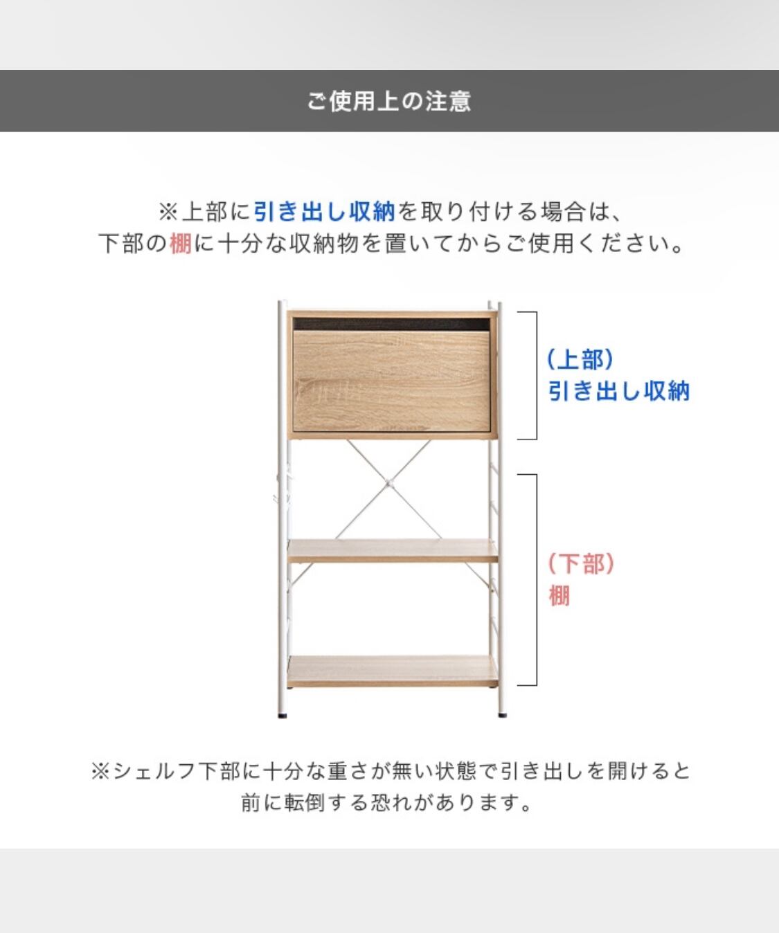 【耐荷重】棚板(各):約10kg、引出天板:約10kg、引出底板(各):約8kg