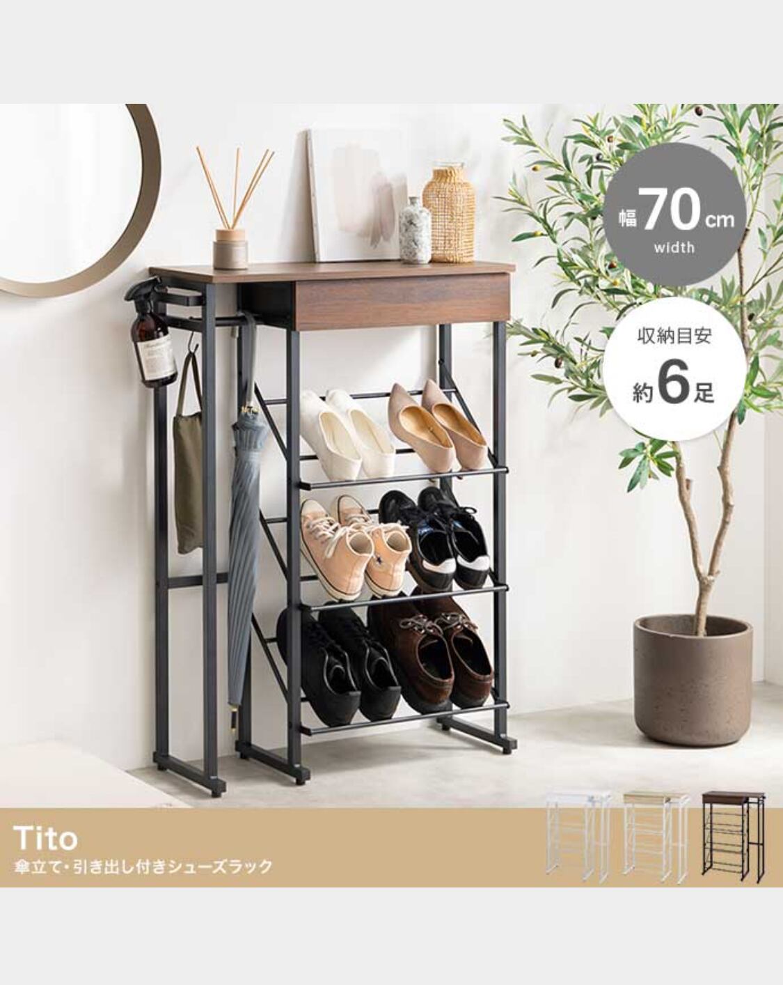 【幅70cm】Tito 傘立て・引き出し付きシューズラック